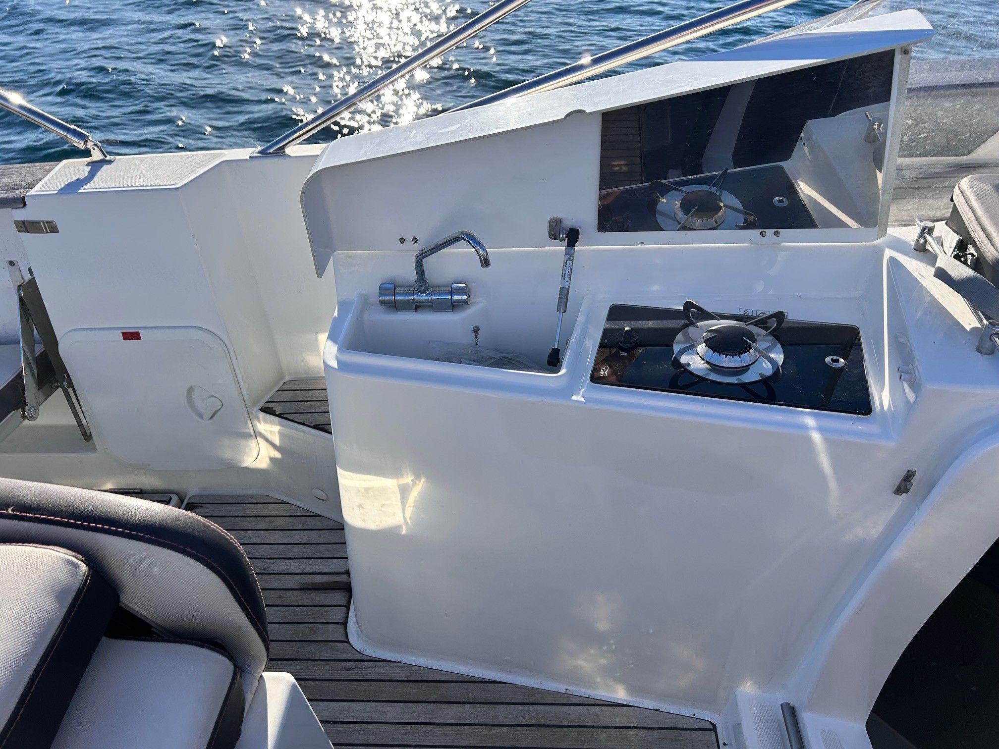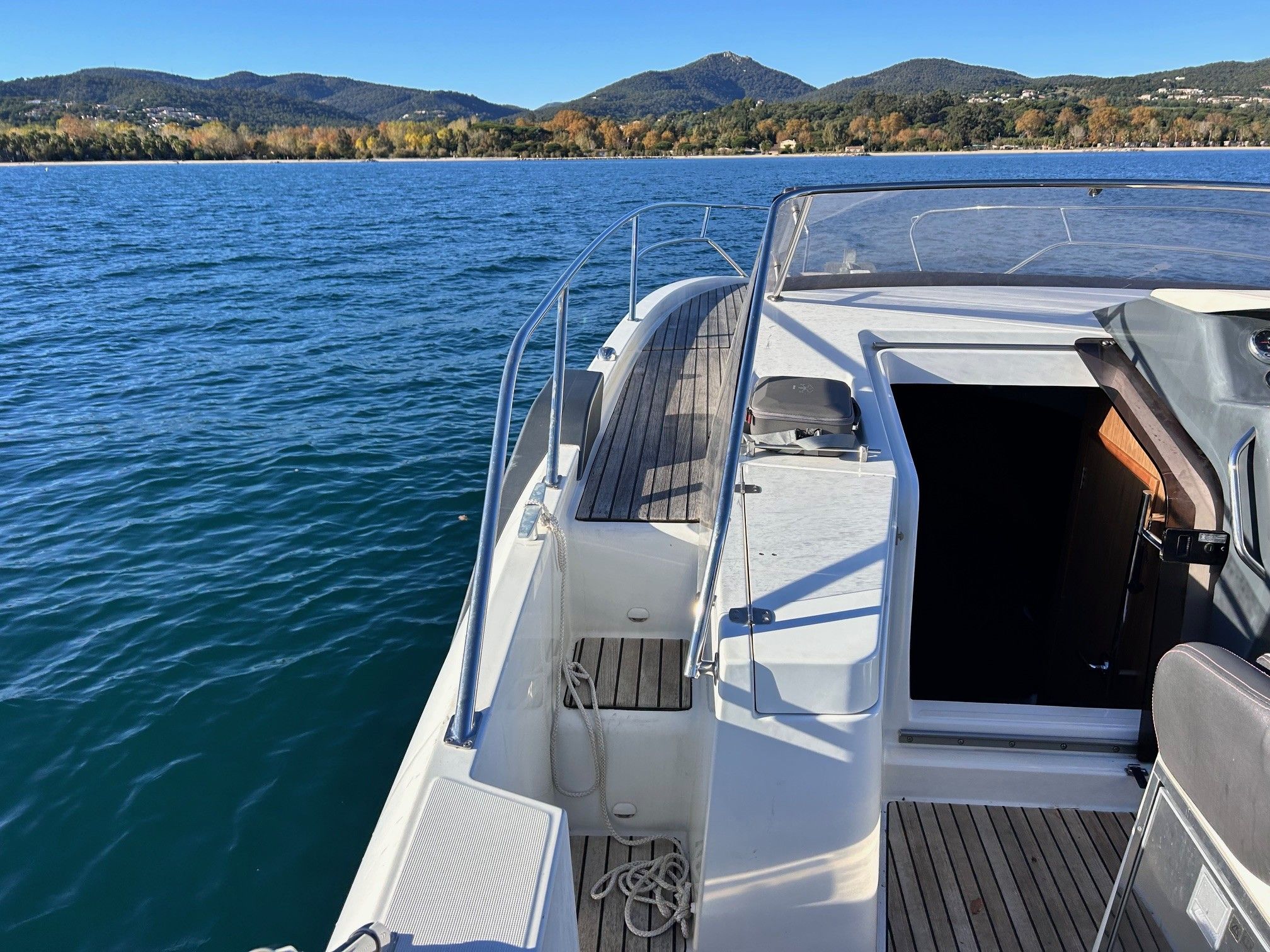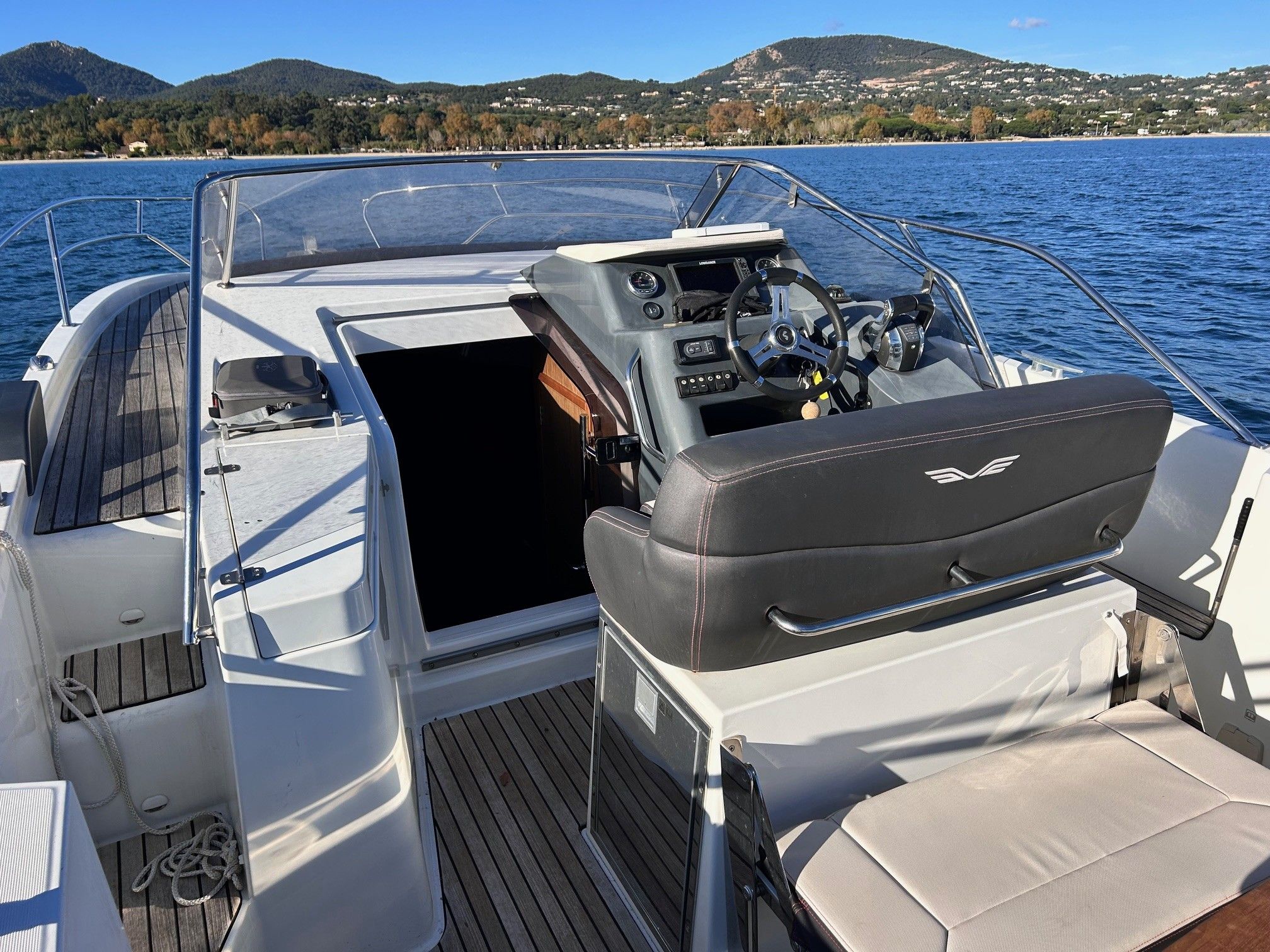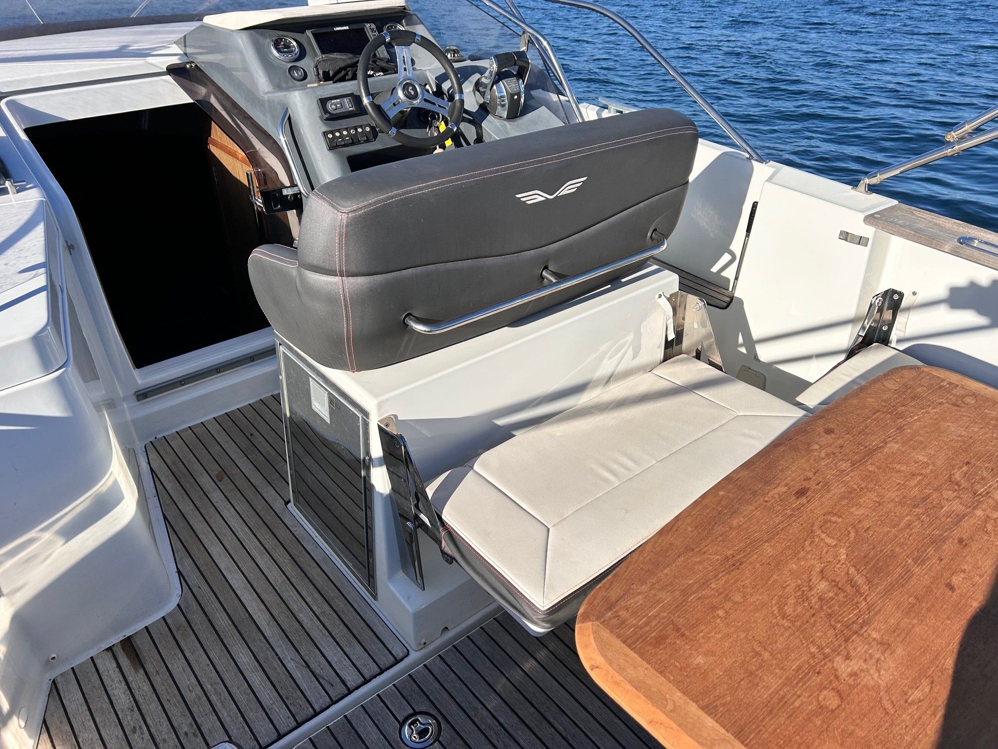 Nombreux équipements : pont complet en teck, sellerie avant neuve, cabine avant très peu utilisée, et bien plus encore.