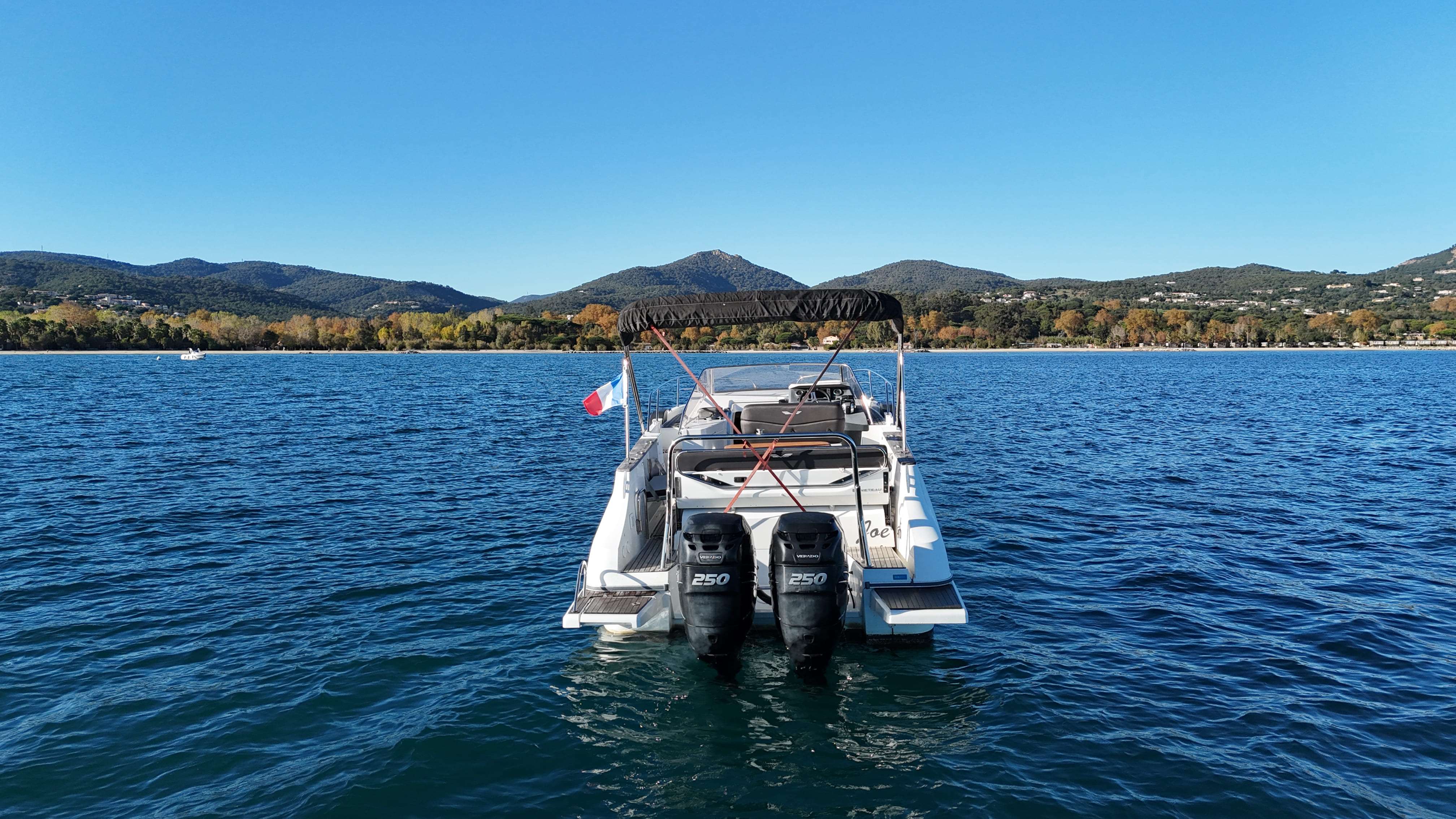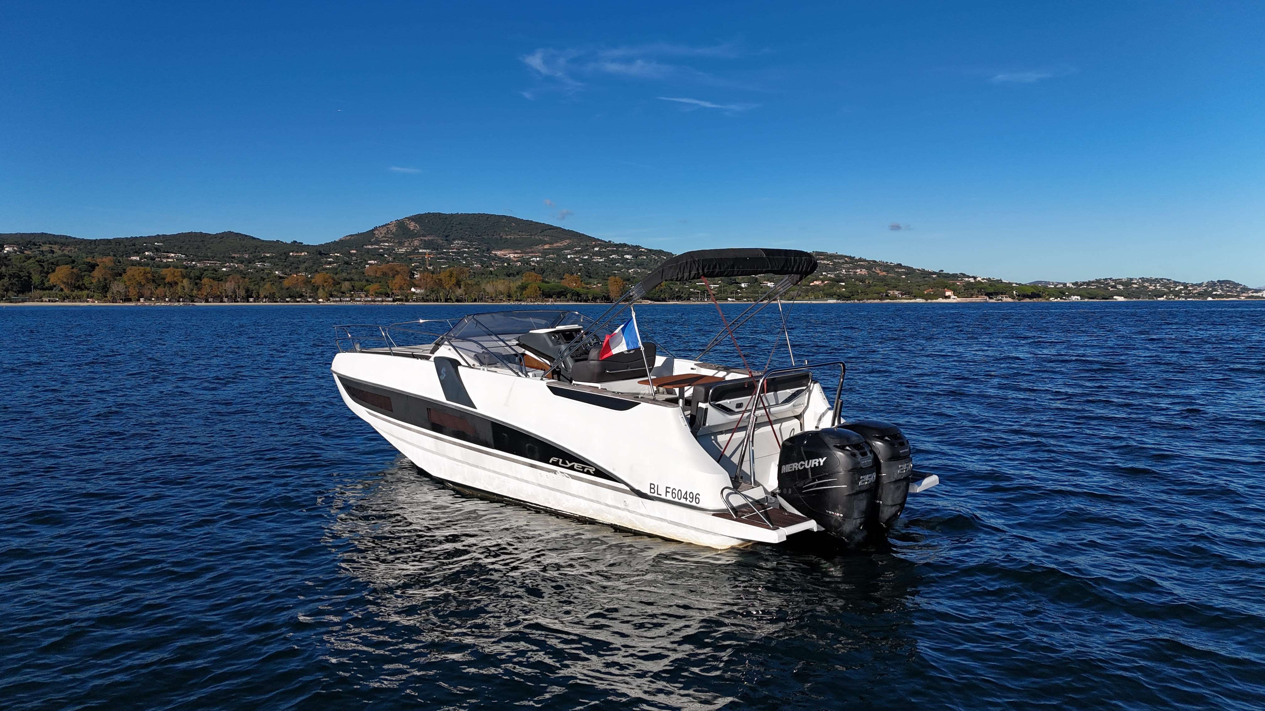 Motorisé avec la puissance maximale : 2 x 250 ch Mercury L6, totalisant seulement 172 heures de navigation.