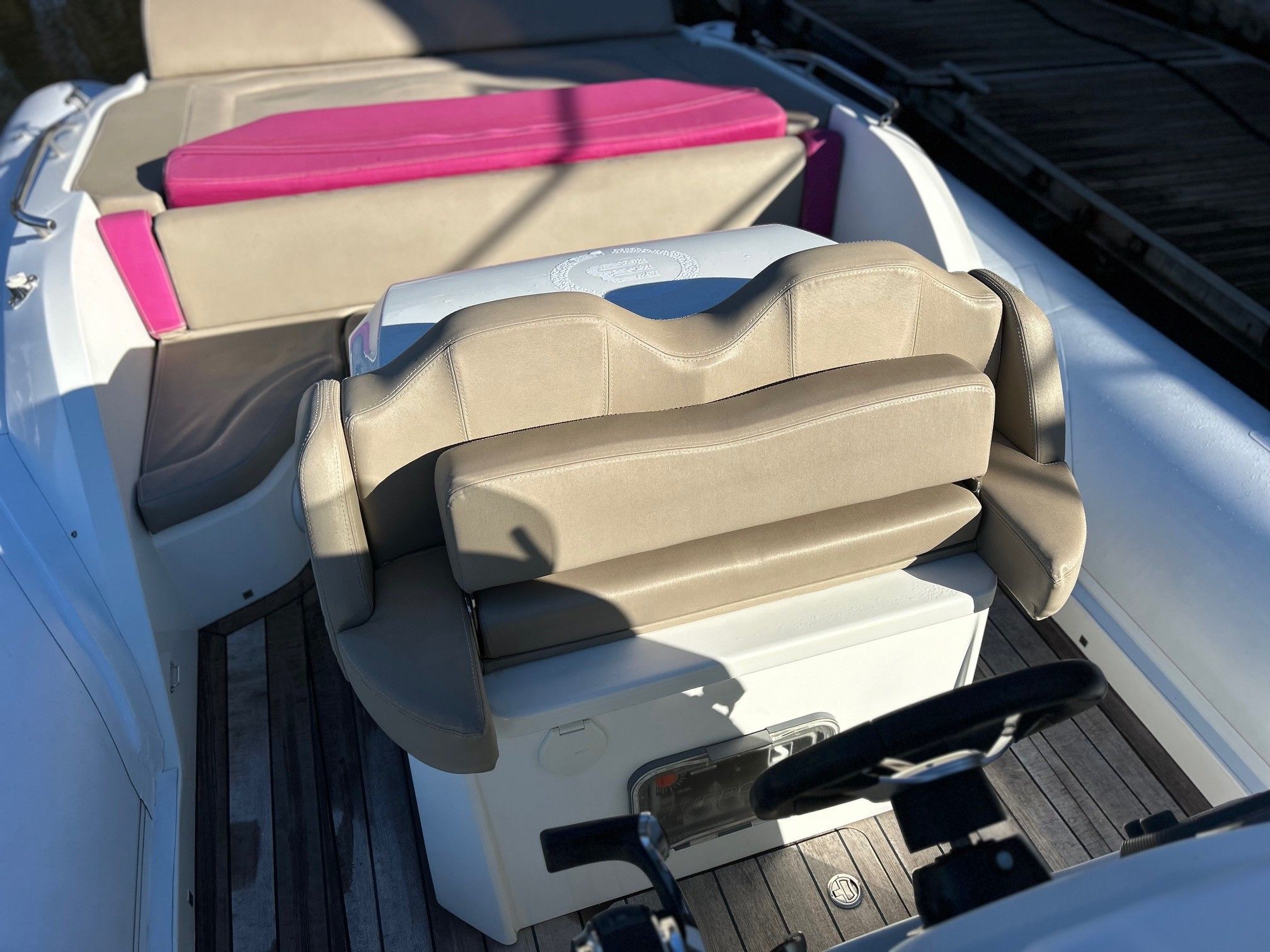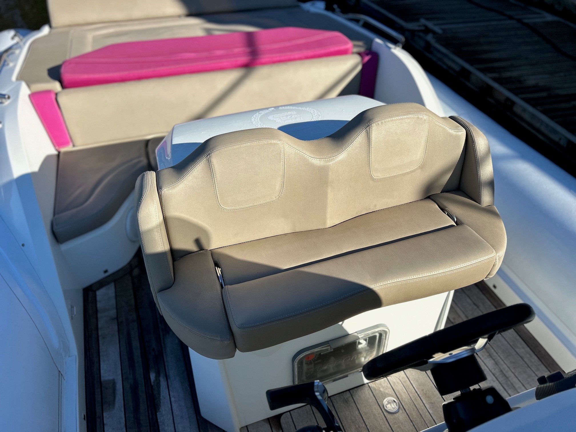 De nombreuses options supplémentaires équipent ce Sacs, telles que le bain de soleil avant complet avec extension sur la console, le pare-brise modifié pour une meilleure visibilité, un gonfleur 12 V intégré dans le bolster, ou encore le dossier relevable de la banquette arrière.